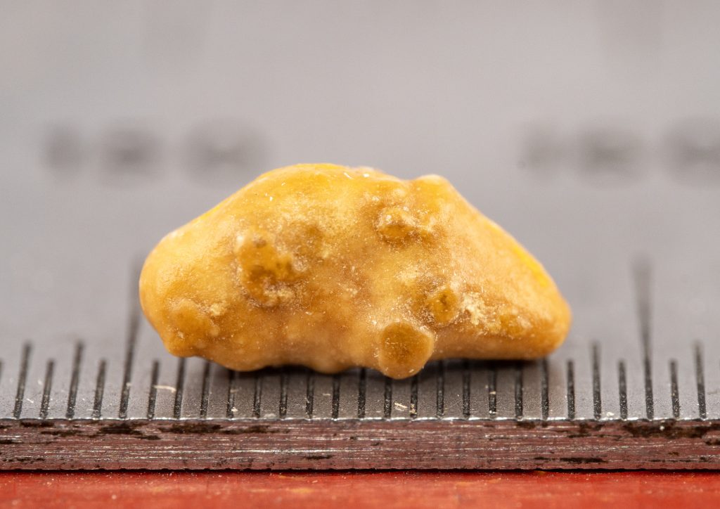 A few weeks ago, I had an ultrasound, which revealed a couple of 3mm kidney stones and an 8mm bladder stone that I had to look forward to. Today, I passed the bladder stone. Mercifully, the 8.4mm long stone was only 4mm in width.