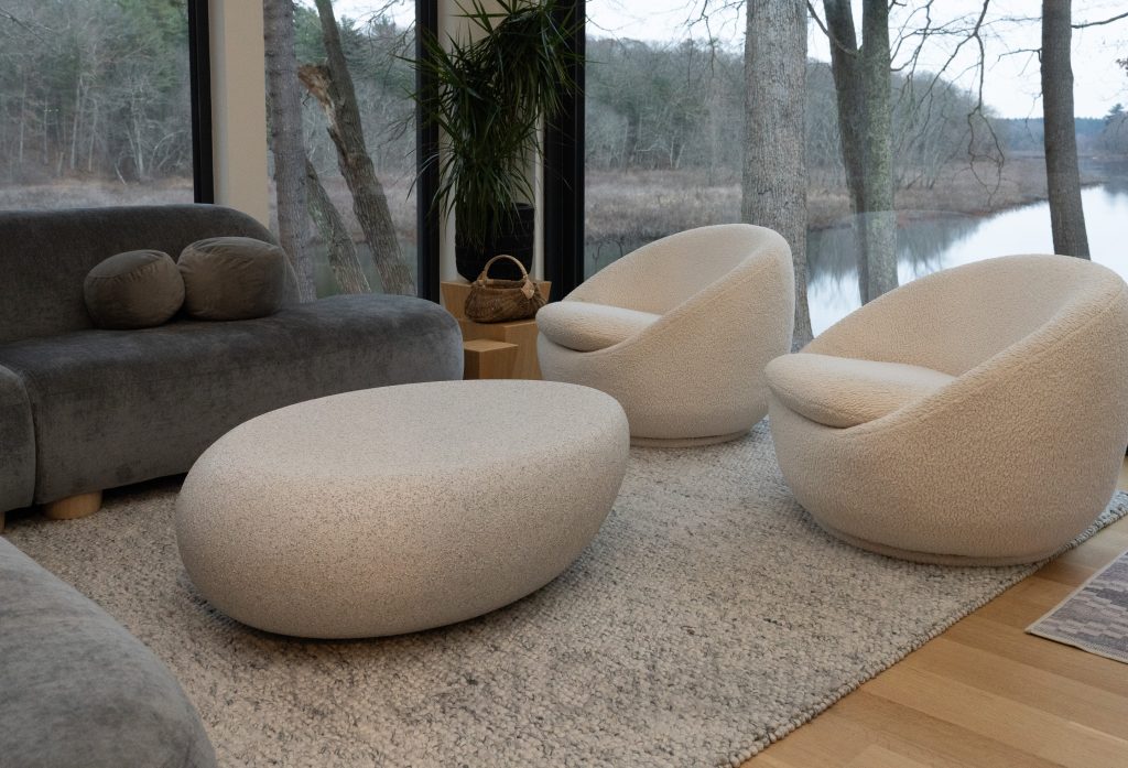 It would be fair to say that our attempt at furnishing our living room has been fraught with missteps. First, we had to replace a brand new couch at the urgent behest of our children, who summarily rejected our choice because it was unsuitable for sprawling out. Today, we said farewell to the coffee table I fashioned from an oval glass top and a bamboo base. It was notorious for bruising the shins of many a guest who failed to see the transparent surface. Today, we replaced it with “the pebble,” a design that complements the other organic shapes in the room. With any luck, there will be no further changes to this space.