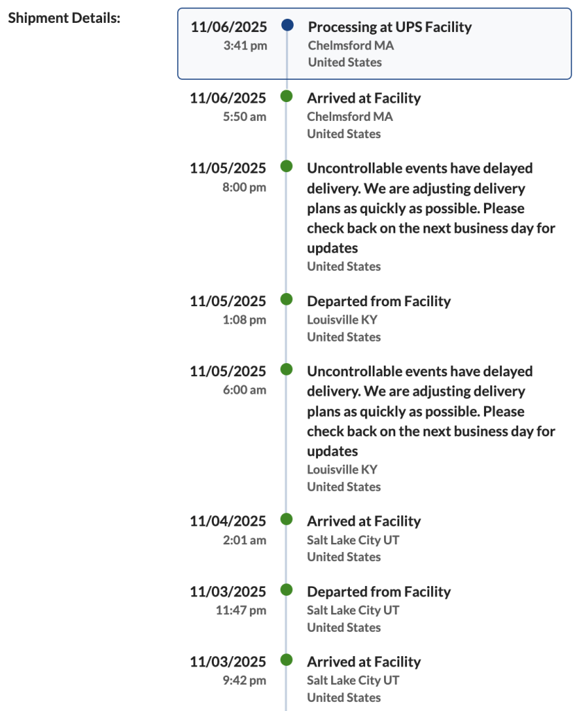 It took me a moment to connect the automated UPS delay notification I received with the tragic plane crash of flight 2976 in Louisville, KY, on November 4th. It appears that a catastrophic engine failure on takeoff caused the crash, which killed the 3 person crew, 9 people on the ground, with another 12 missing and presumed dead. My heart goes out to the families and friends of all who have been impacted by this horrific accident. I also feel guilty that a package for me was processed through the UPS Worldport facility in Louisville while workers there were grieving for their community and lost colleagues. I can only imagine how difficult it must be to return to business as usual after such a tragic event. When my package arrives, one of 22.4 million per day delivered by UPS, I hope to greet the driver and share my condolences and appreciation for the work they do.